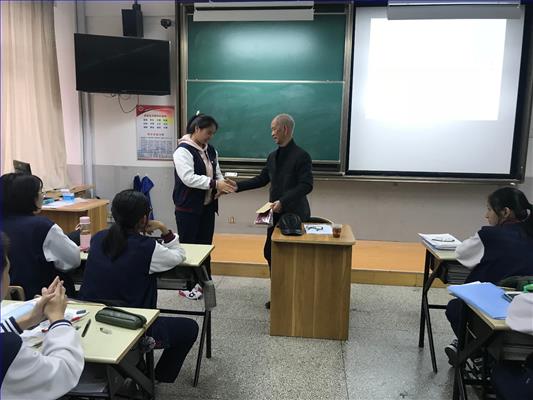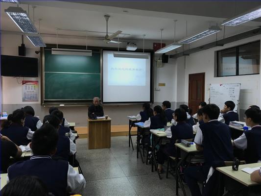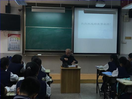 2018年10月20日,上海市侨爱公益校园联盟与我校党委、团委联合开展“重阳敬老日,归侨进校园”活动,邀请新加坡归侨邱荣芳老先生来到格致中学,为高一(6)班的全体同学开展讲座。