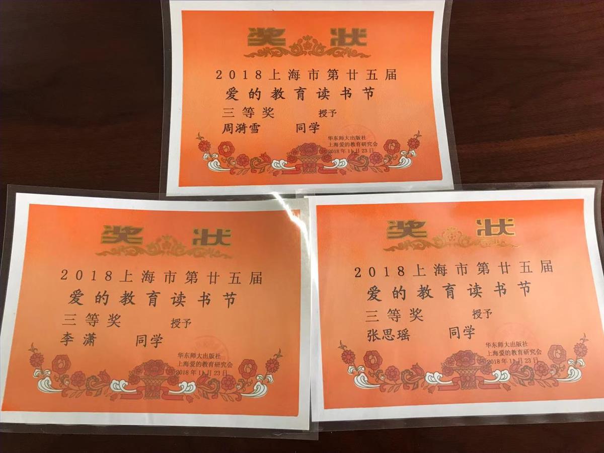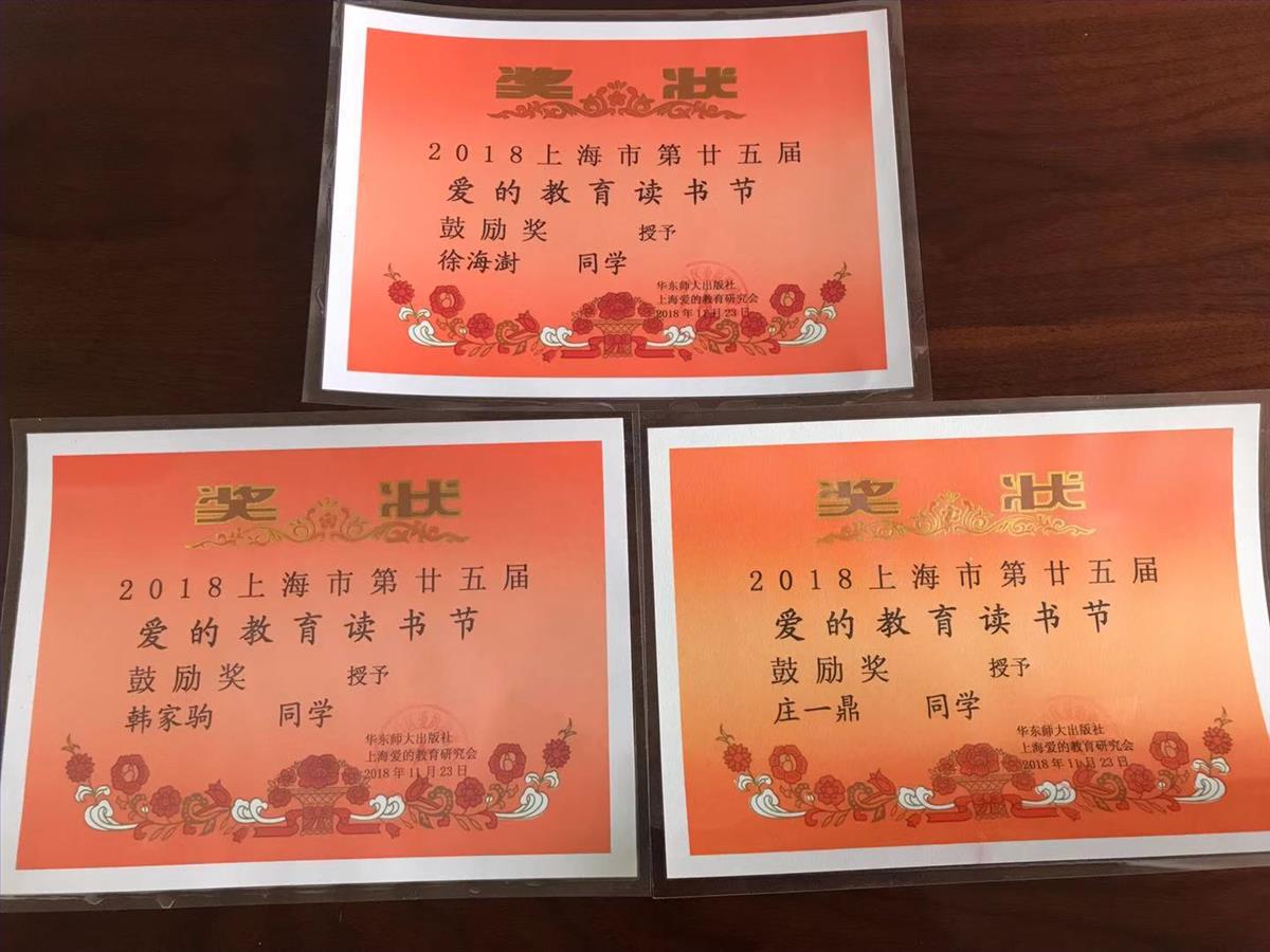 喜报:我校学生在“2018年上海市第二十五届爱的教育读书节”中获奖