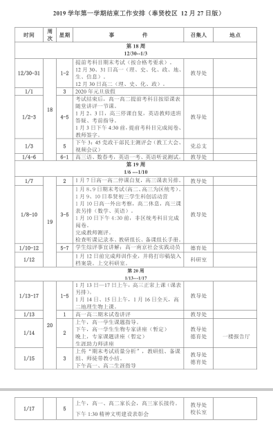 【12月30日稿】2019学年度第一学期结束工作安排&2019学年度第二学期开学前准备工作